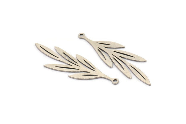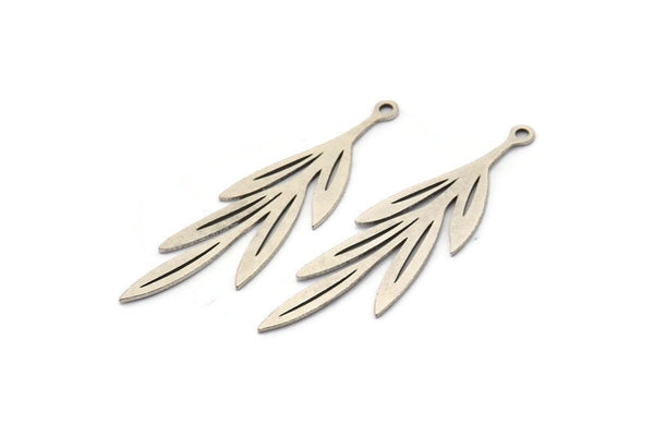 Antique Silver Plated Brass Leaf Charms With 1 Loop