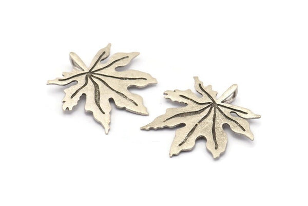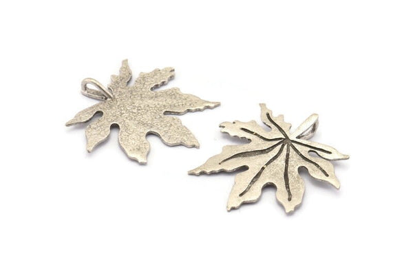 Silver Leaf Pendant, 2 Antique Silver Plated Brass Leaf Pendants With 1 Loop, Charms (37x1mm) V114
