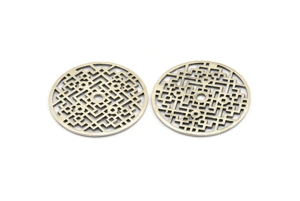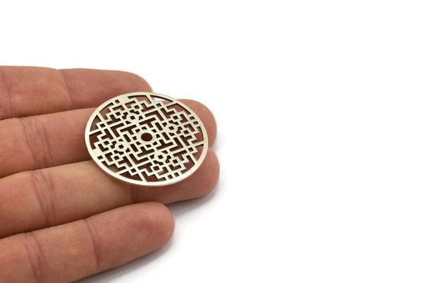 Silver Mandala Charm, Antique Silver Plated Brass Textured Mandala Charm, Earrings, Pendants, Findings (37mm) BS 2441