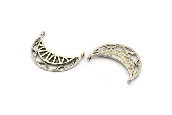 Silver Moon Charm, 2 Antique Silver Plated Brass Moon Pendants With 2 Loops, Findings (28x11x2mm) N1260