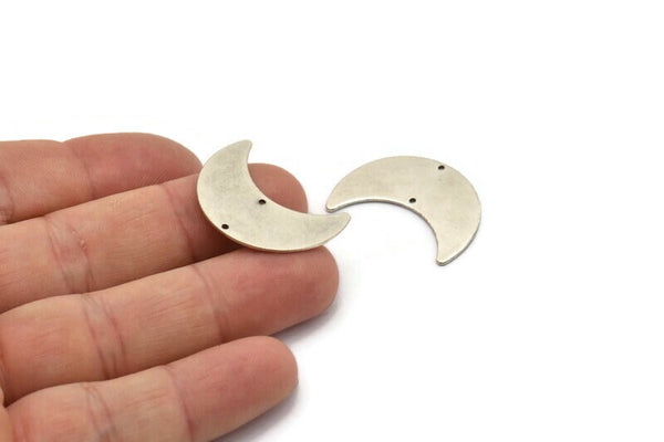 Silver Moon Charm, 4 Antique Silver Plated Brass Moon Charms with 2 Holes, Pendants (28x12x0.80mm) D862