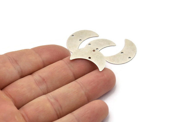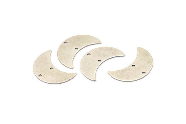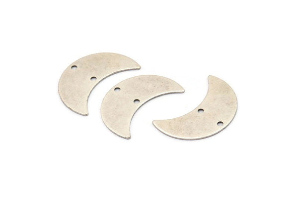 Antique Silver Plated Brass Moon Charms with 2 Holes