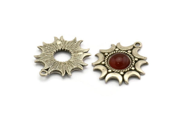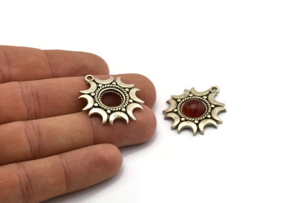 Antique Silver Plated Brass Moon Pendants With 1 Loop, Stone Setting - Pad Size 10mm