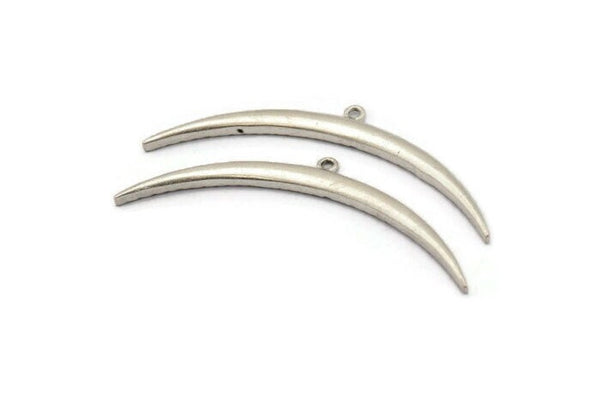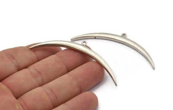 Antique Silver Plated Brass Textured Wide Crescent Moon Necklace Pendant, Charm