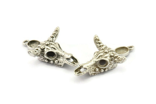 Antique Silver Plated Brass Ox Head Skull Charms With 1 Loop - Pad Size : 6x8mm