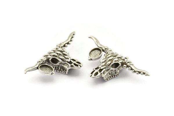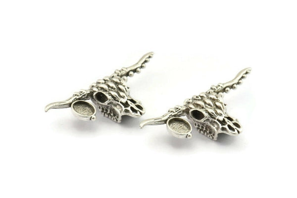 Antique Silver Plated Brass Ox Head Skull Charms With 1 Loop - Pad Size : 6x8mm