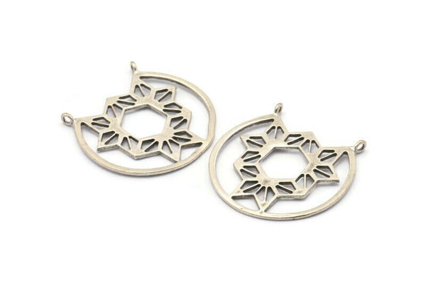 Textured Antique Silver Plated Brass Pendants With 2 Loops