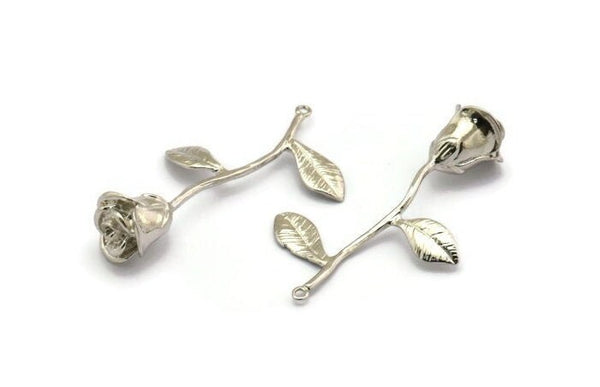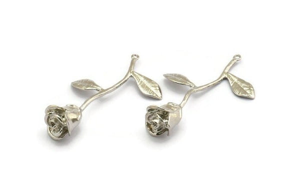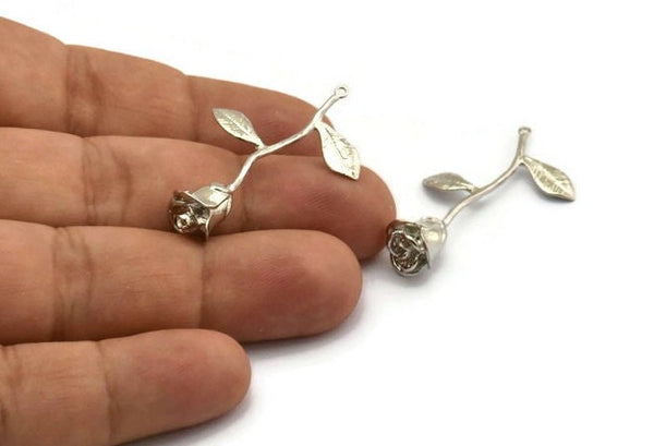 Silver Plated Brass Flower Charms With 1 Loop