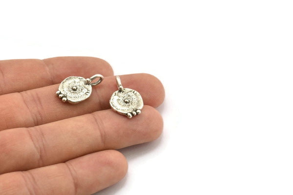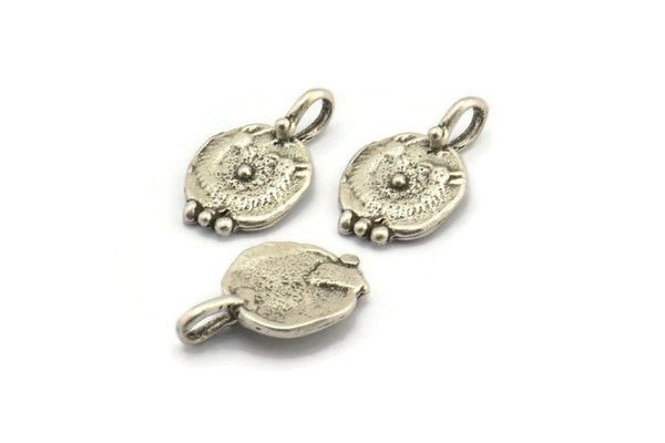 Antique Silver Plated Brass Round Charms With 1 Loop