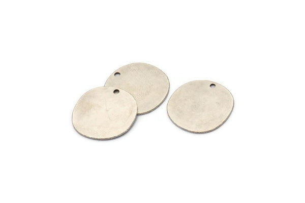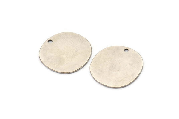 Silver Round Charm, 6 Antique Silver Plated Brass Irregular Shaped Round Charms With 1 Hole, Pendant Charms (18x0.60mm) A3218
