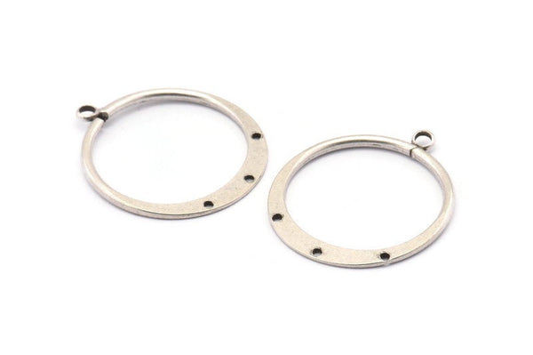 Antique Silver Plated Brass Round Earring Charms With 1 Loop and 3 Holes