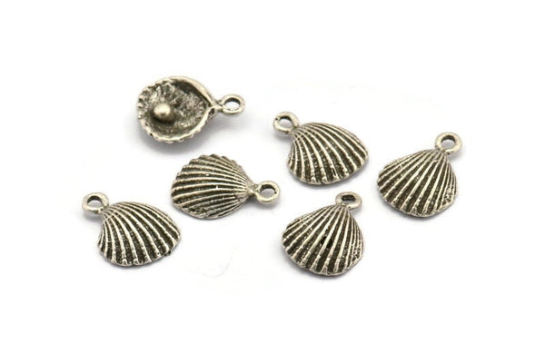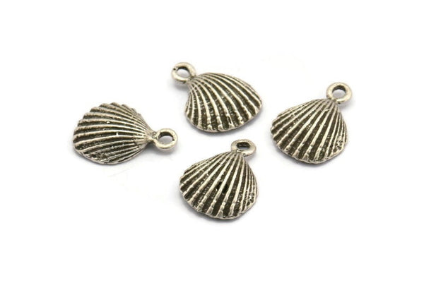 Antique Silver Plated Brass Sea Shell Charm with 1 Loop