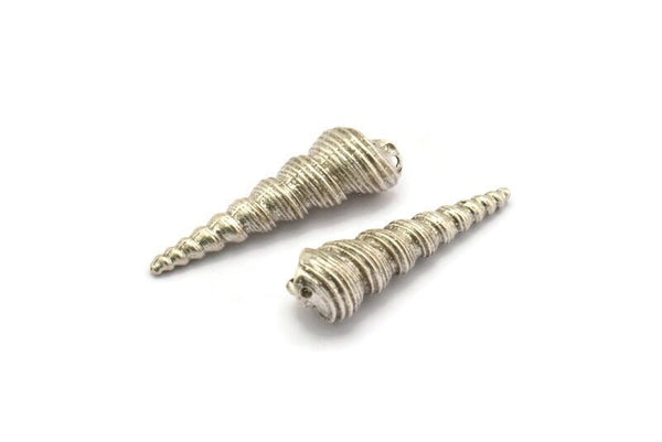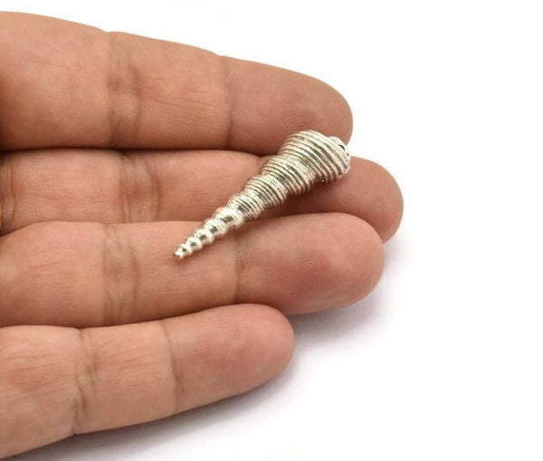Antique Silver Plated Brass Sea Shell Charm With 1 Hole