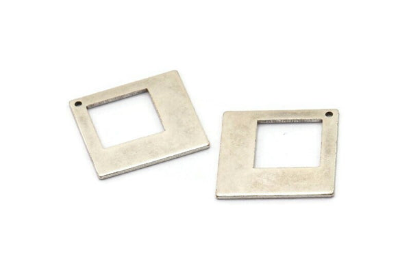 Antique Silver Plated Brass Square Charms With 1 Hole