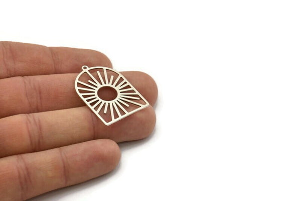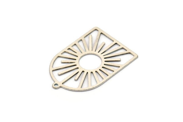 Antique Silver Plated Brass Sun Shaped Charms With 1 Loop