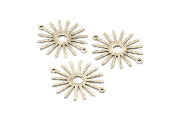 Textured Antique Silver Plated Brass Sun Connectors With 2 Loops
