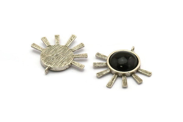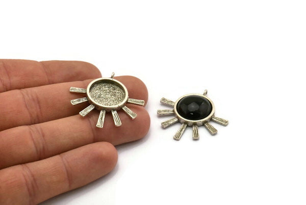 Antique Silver Plated Brass Sunshine Charm With 1 Loop