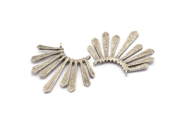 Antique Silver Plated Brass Textured Sunny Pendant With 2 Loops