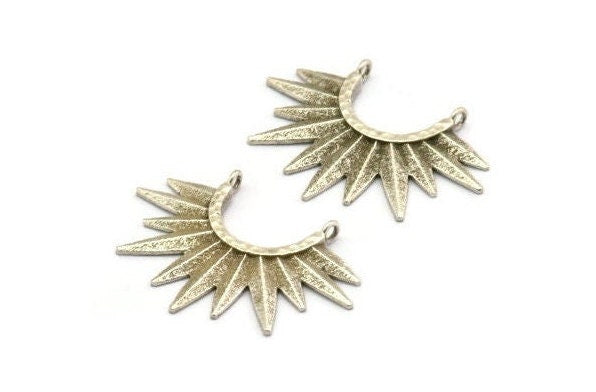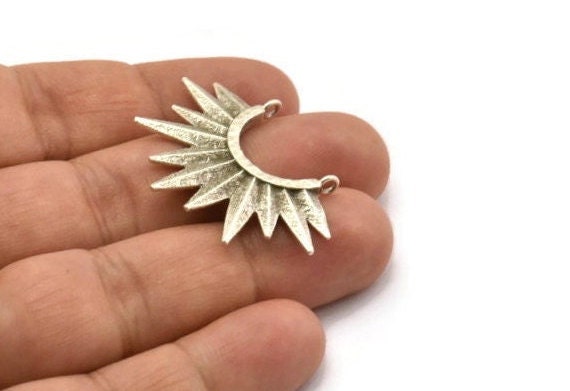 Antique Silver Plated Brass Sunny Ethnic Pendant With 2 Loops
