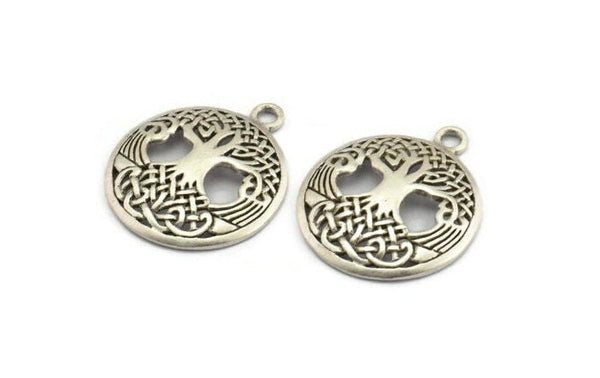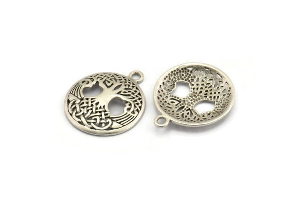 Antique Silver Plated Brass Tree Pendants With 1 Loop