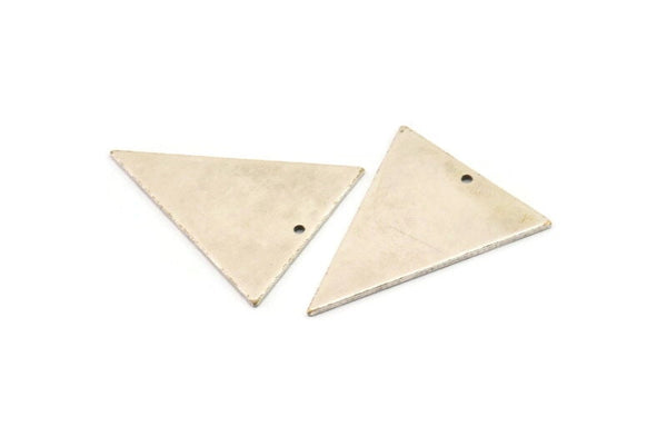 Silver Triangle Pendant, 2 Antique Silver Plated Brass Triangle Charms With 1 Hole, Earrings, Findings (32x27x1mm) D0675