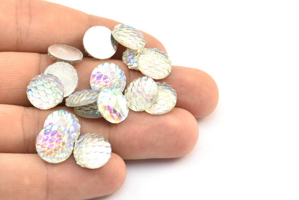 Fish Scale Cabochon, 50 Gray Resin Round Cabochon (12x3mm) TS-20 T070