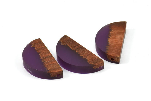 Resin&Wood Semicircle Pendant, 5 Purple Brown Half Moon Pendant with 2 Holes (32x16mm) X004