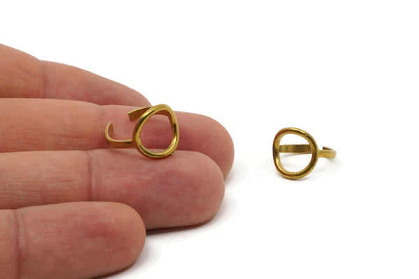 Adjustable Circle Ring, 5 Raw Brass Adjustable Circle Rings - (12.5mm) Mn14