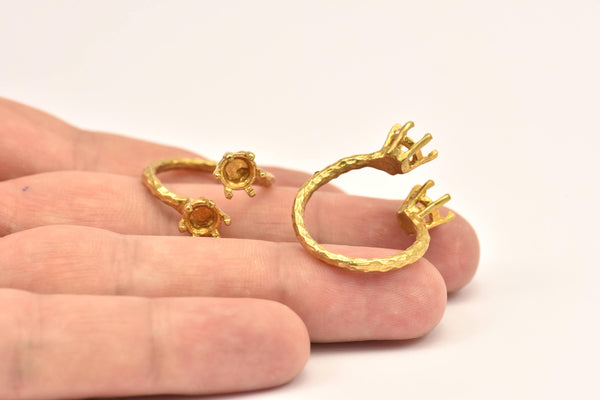 Adjustable Ring Blank - 4 Raw Brass 6 Claw Ring Blanks Pad Size 5mm N0330