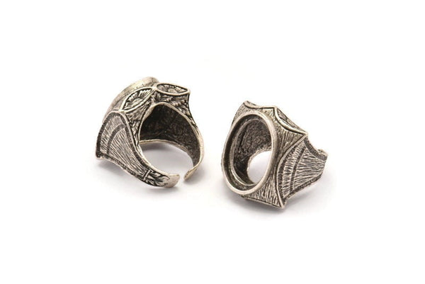Antique Silver Ring Setting, 1 Antique Silver Plated Ring Setting with Pad Size 21x15mm U052