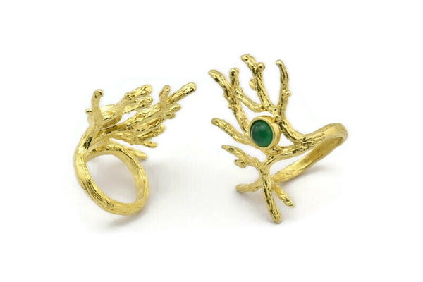 Raw Brass Branch Ring With 1 Stone Settings - Pad Size 6mm
