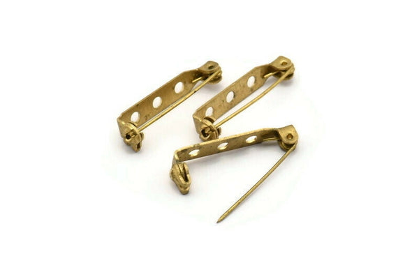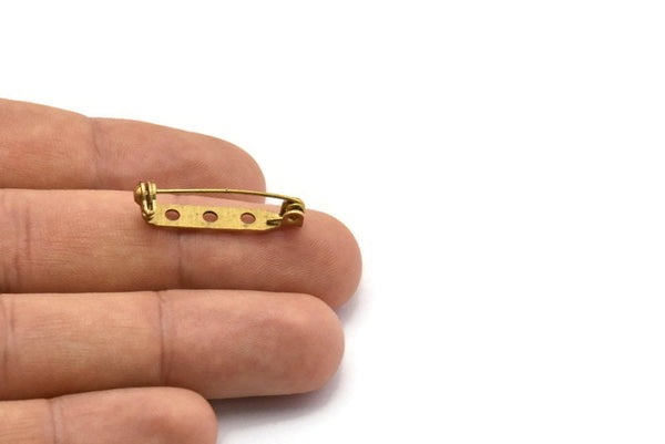 Raw Brass Brooch Pin Back Base Safety Pin with 3 Holes