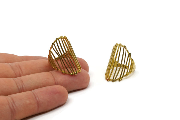 Brass Cage Ring - 2 Raw Brass Adjustable Cage Rings Mn76
