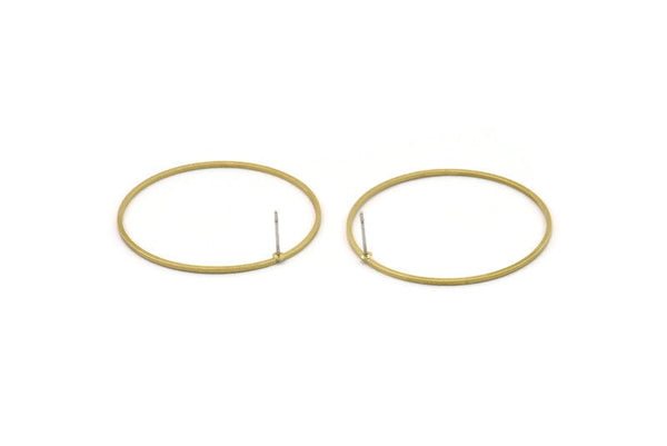Brass Circle Earring, 6 Raw Brass Circle Stud Earrings (40x1x1mm) A6093 A3221
