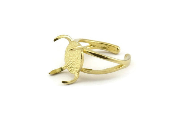 Raw Brass Adjustable 4 Claw Ring - Ring Stone Setting - Pad Size 12x10mm