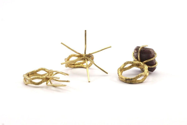 2 Raw Brass Ring Blanks with 6 Claw for Natural Stones