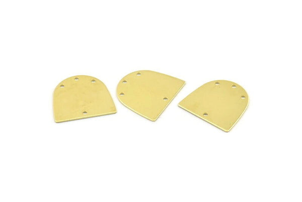 Raw Brass D Shape Charms With 4 Holes