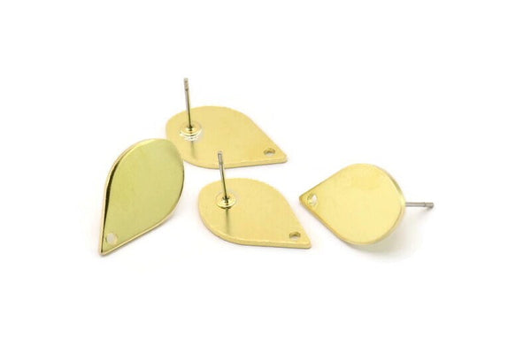 Brass Drop Earring, 6 Raw Brass Drop Stud Earrings With 1 Hole (20x12x1mm) A6467 A2652