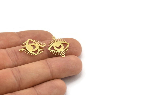 Brass Eye Charm, 24 Raw Brass Crescent Moon Patterned Eye Shaped Charms With 2 Loops, Connectors (22x18x0.60mm) A3486