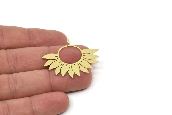 Brass Flower Charm, 2 Raw Brass Flower Shaped Charms With 1 Loop, Findings (33x40x0.60mm) SMP0150 A2249 A5486