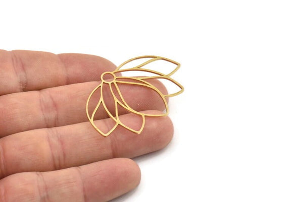Brass Flower Charm, 2 Raw Brass Lotus Flower Charms, Flower Earrings (46x30x0.80mm) SMP1237