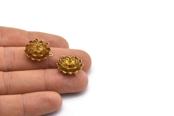 Brass Flower Charm, Raw Brass Flower Charms With 2 Loops, Findings (18x10mm) N1231
