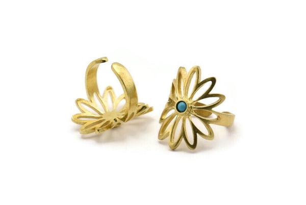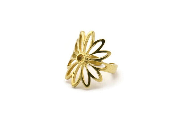 Raw Brass Flower Rings With 1 Stone Settings - Pad Size 3mm