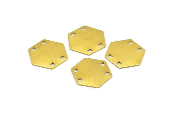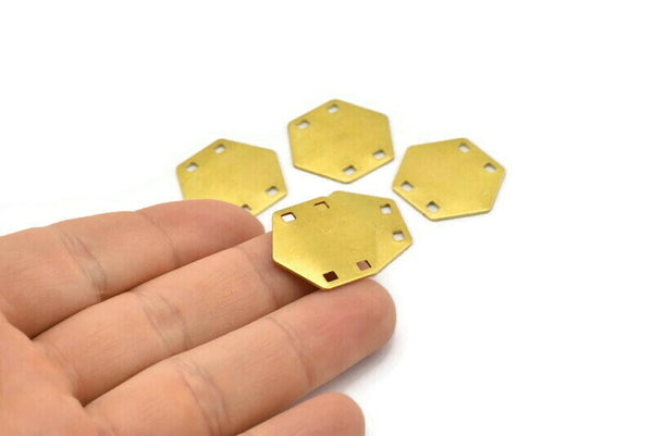 Raw Brass Hexagon Stamping Blank Tag Charms 4 Holes