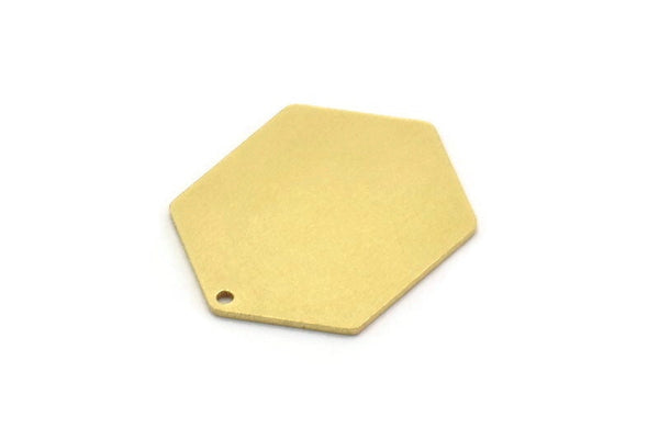 Brass Hexagon Charm, 6 Raw Brass Hexagon Charms With 1 Hole, Findings (25x19x0.80mm) SMP0721