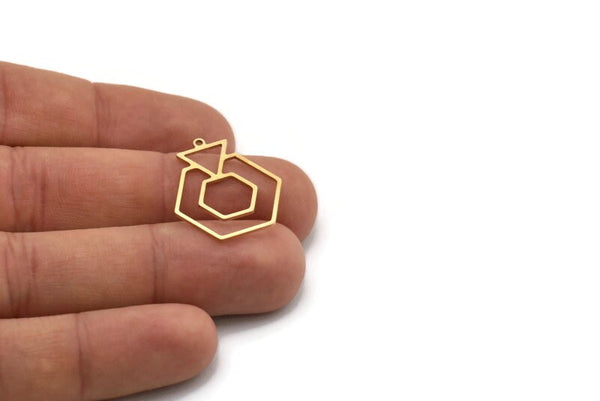 Brass Hexagon Charm, 6 Raw Brass Hexagon Shaped Charms With 1 Loop, Earring Findings, Geometric Charms (26x22x0.80mm) SMP1112