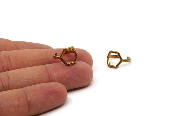 Brass Hexagon Ring - 5 Raw Brass Adjustable Hexagon Ring - (13-14mm) Mn70