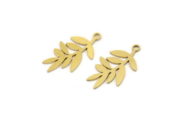 Brass Leaf Charm, 12 Raw Brass Leaf Charms With 1 Loop, Charm Pendants (22x13x0.60mm) A3567