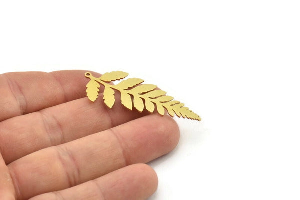 Brass Leaf Charm, 6 Raw Brass Leaf Charms With 1 Loop, Charm Earrings (46x20x0.80mm) SMP1203 A5792