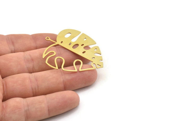 Raw Brass Monstera Leaf Charms With 1 Loop